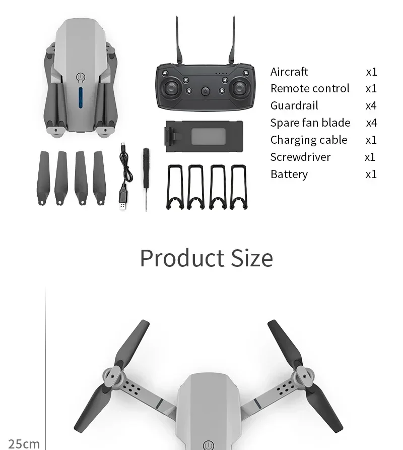 E88Pro4K DroneWiFi FPV HD Camera/Foldable RC Quadcopter/Altitude Hold/360° Flips/Headless Mode/Ideal Gift for Kids&Beginners